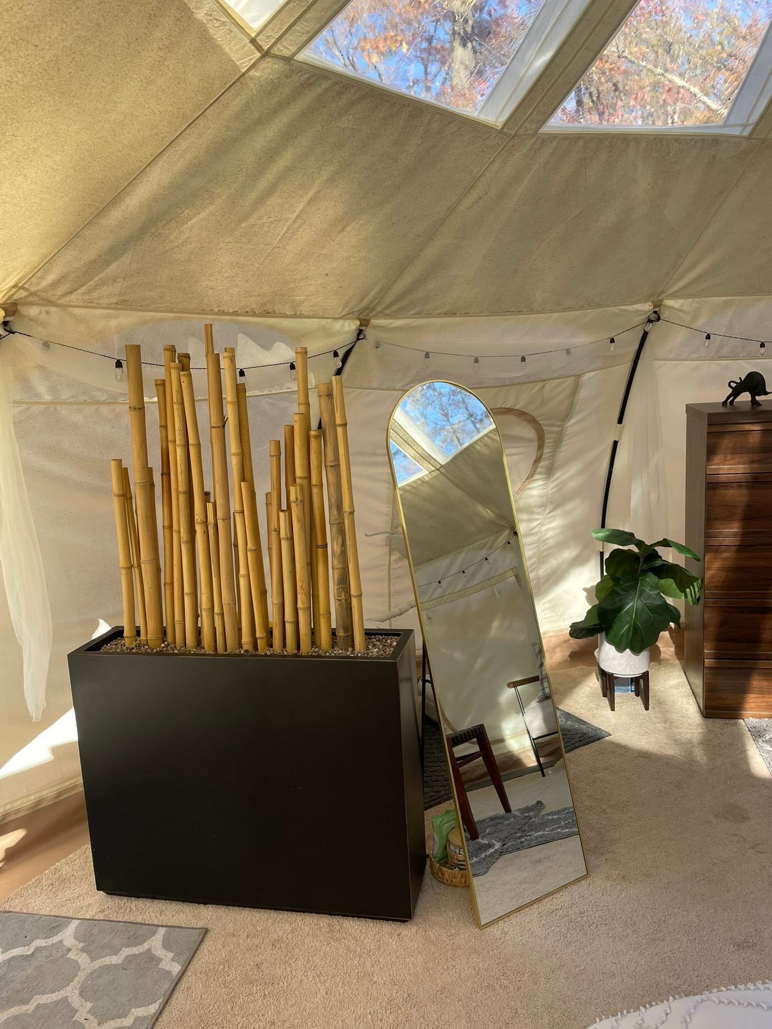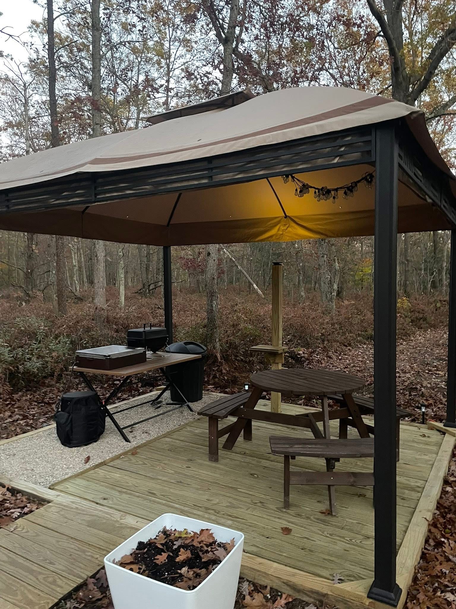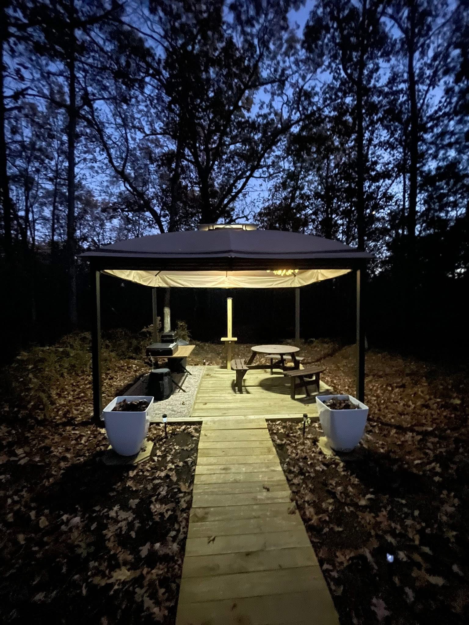 Enjoy a very unique setting! Yurt is nestled in serene woods with all the noise of the wilderness. Enjoy the privacy of being in the woods with a very cozy setting! Solar runs all power so it’s “rustic”. King size bed, coffee maker, toilet/sink and propane heat.
