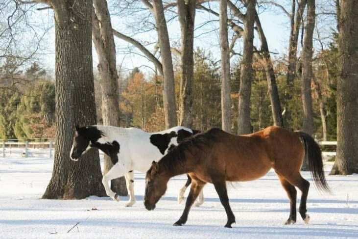 Yurt horses enjoying their stay at Barn Haven