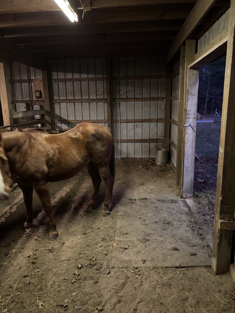 Rustic site big enough for your living quarters trailer. Park your rig right in front of the pasture. Conveniently located close to all the amenities the stable has to offer.